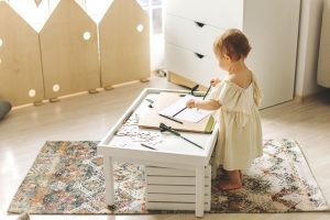 С тази колекция сме имали за цел всеки елемент в стаята да предлага допълнителни възможности за игра и развитие: игра на криеница с кукли през отвора на леглото, катерене по етажерката – стълбица, „ходене на пазар“ и похапване на малката удобна маса, строене на къщи и заслони от модулите на дивана.