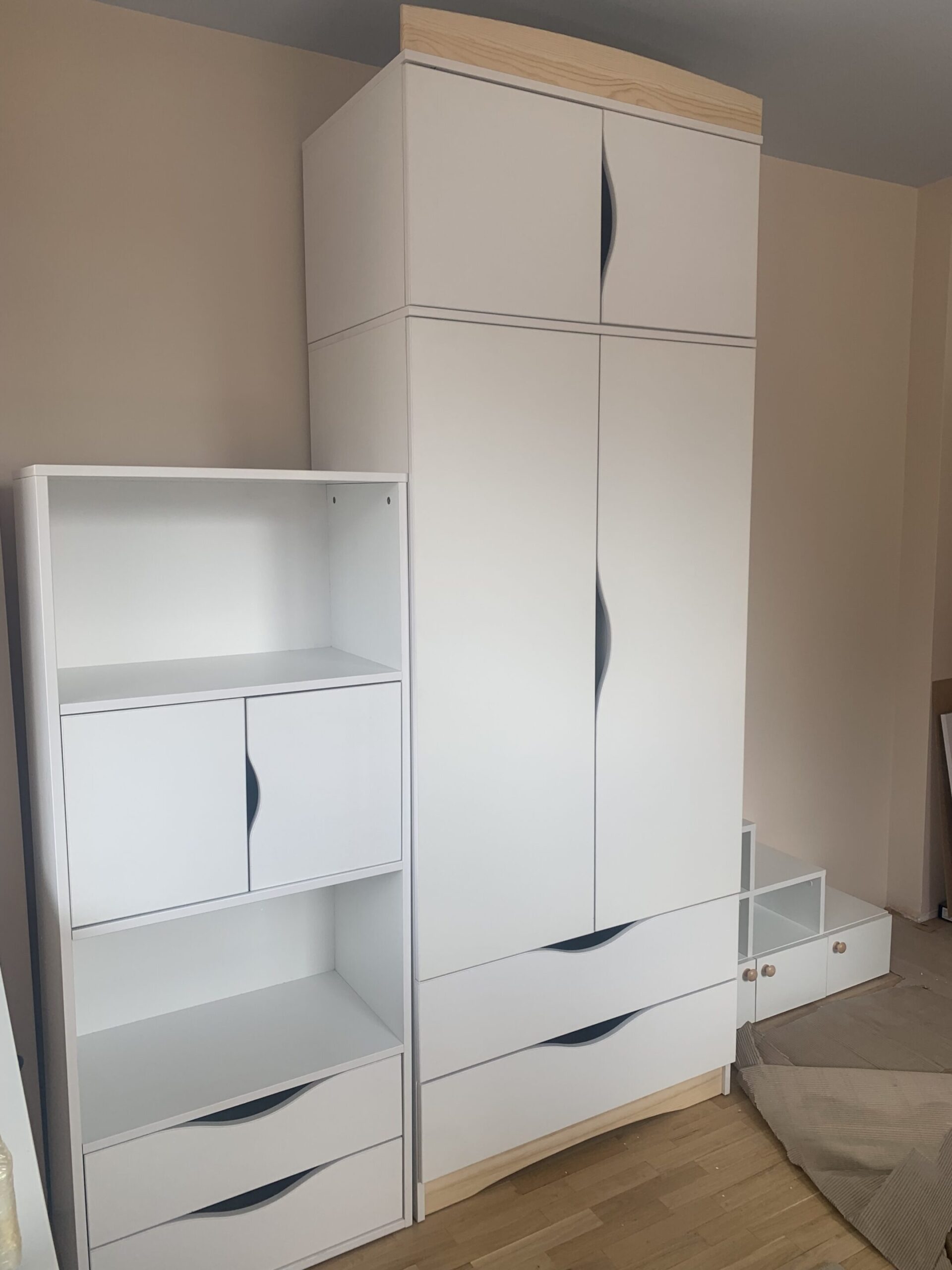 Задължителен е монтажът на надстройката към гардероба. Гардеробът с тази ширина е изключително стабилен, но все пак препоръчваме закрепяне с окачвачи към стената. Ще получите необходимия обков.