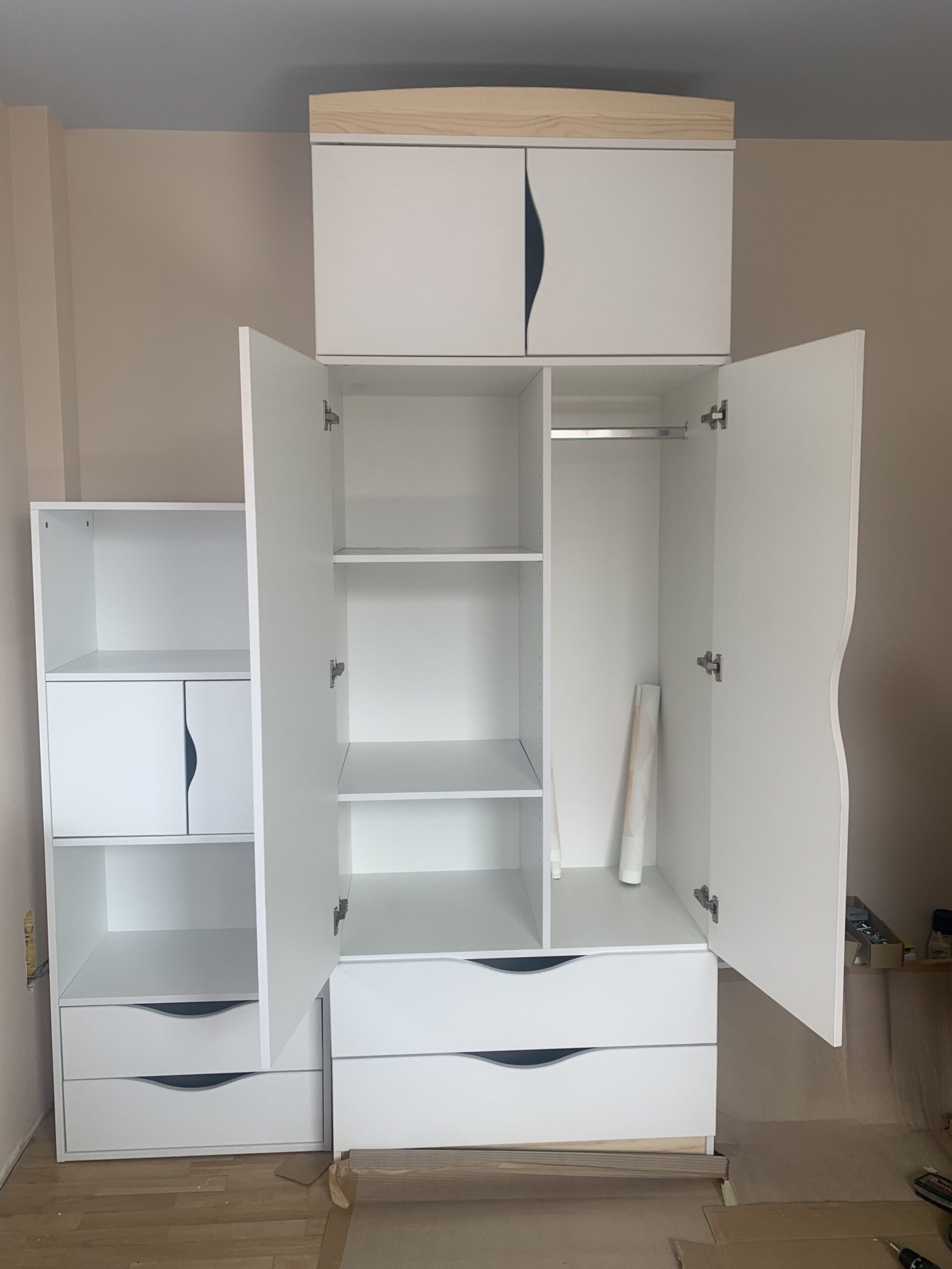 - разпределение: ляво крило с 2 рафта, дясно крило с лост за дрехи; 2 чекмеджета